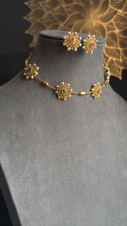 Crescent/ Diya Inspired Lotus Coin Necklace with Earrings Necklace Set South Indian jewelery