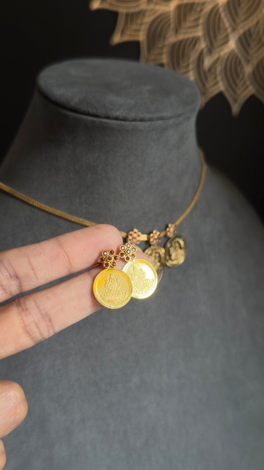 Traditional Lakshmi Coin Necklace Jhumka Set