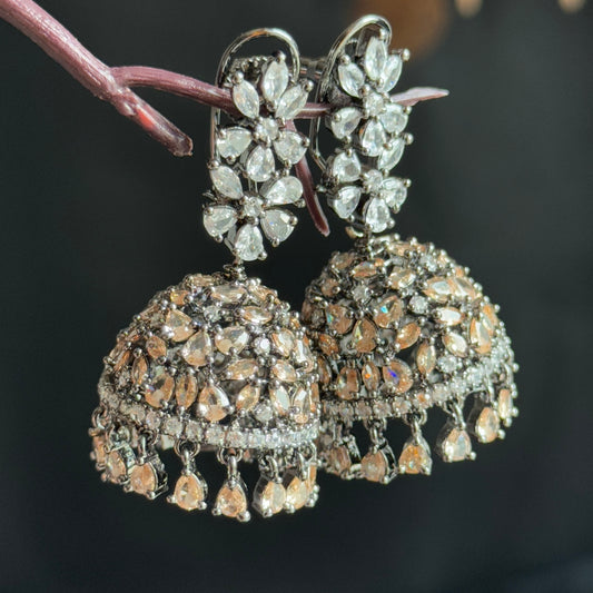Black Blossom Jhumka Earrings Zircon Crystals - INDO WESTERN