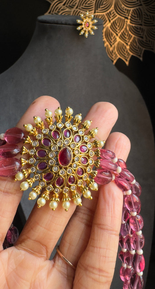 Bridal Set Long and short Palakka Kerala Manga palakka Neckpiece- Vine Gold South Indian jewelry long Necklace Set - TRADITIONAL- Vine Gold South Indian jewelry long Necklace Set - TRADITIONAL