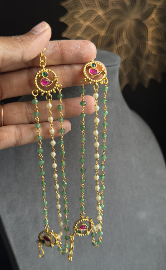 Jadau Unique bird Pearl Layer EarChain Kaan | South Indian Gold Maatal Ear Support - TRADITIONAL