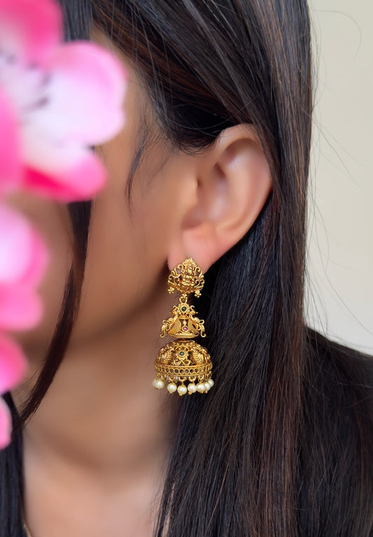 Antique Nakshi Lakshmi Matt Gold Jhumka - TEMPLE