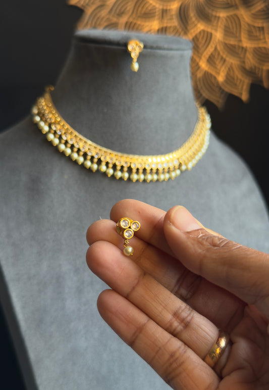 Kemp AD dainty Gold South Indian jewelry Necklace Set - TRADITIONAL