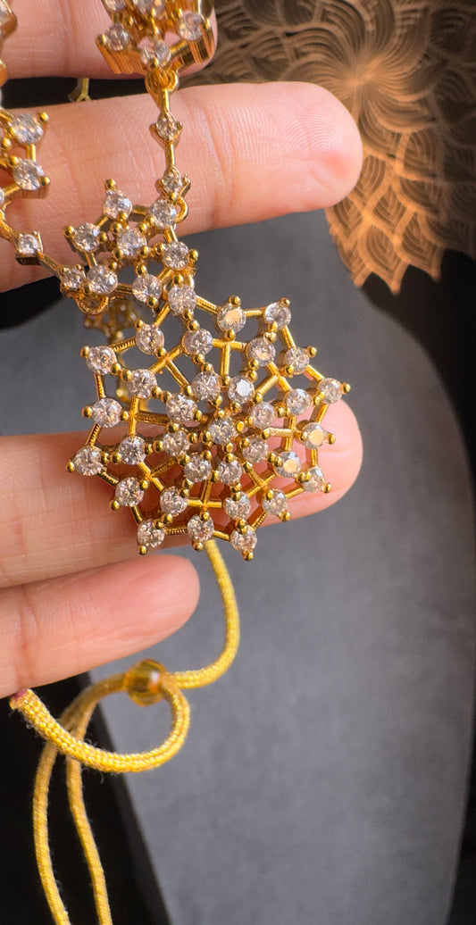 Dainty american diamond row Gold South Indian jewelry Necklace Set - TRADITIONAL