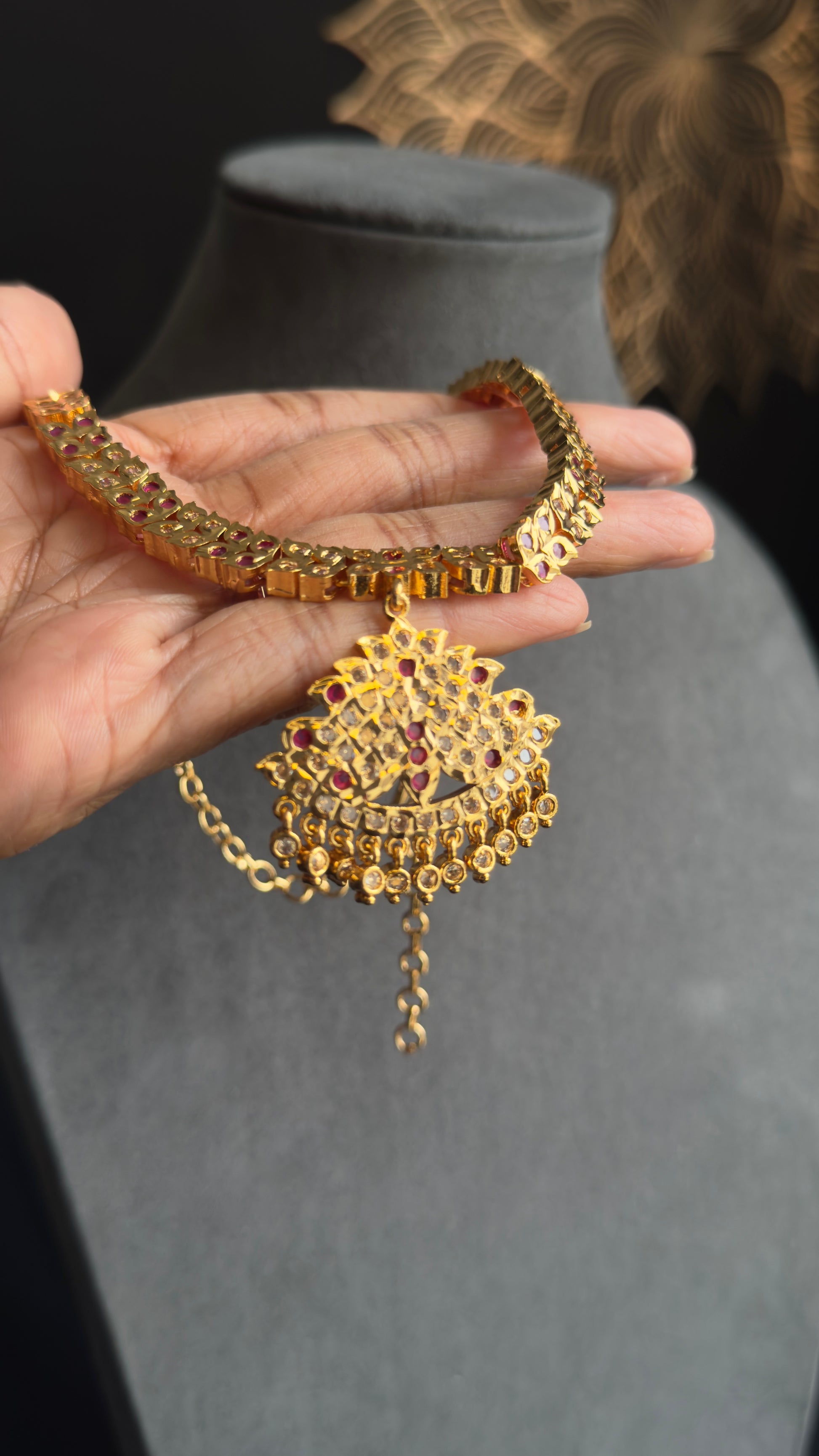 The South Indian design with its intricate detailing makes it a must-have piece in your jewelry collection.