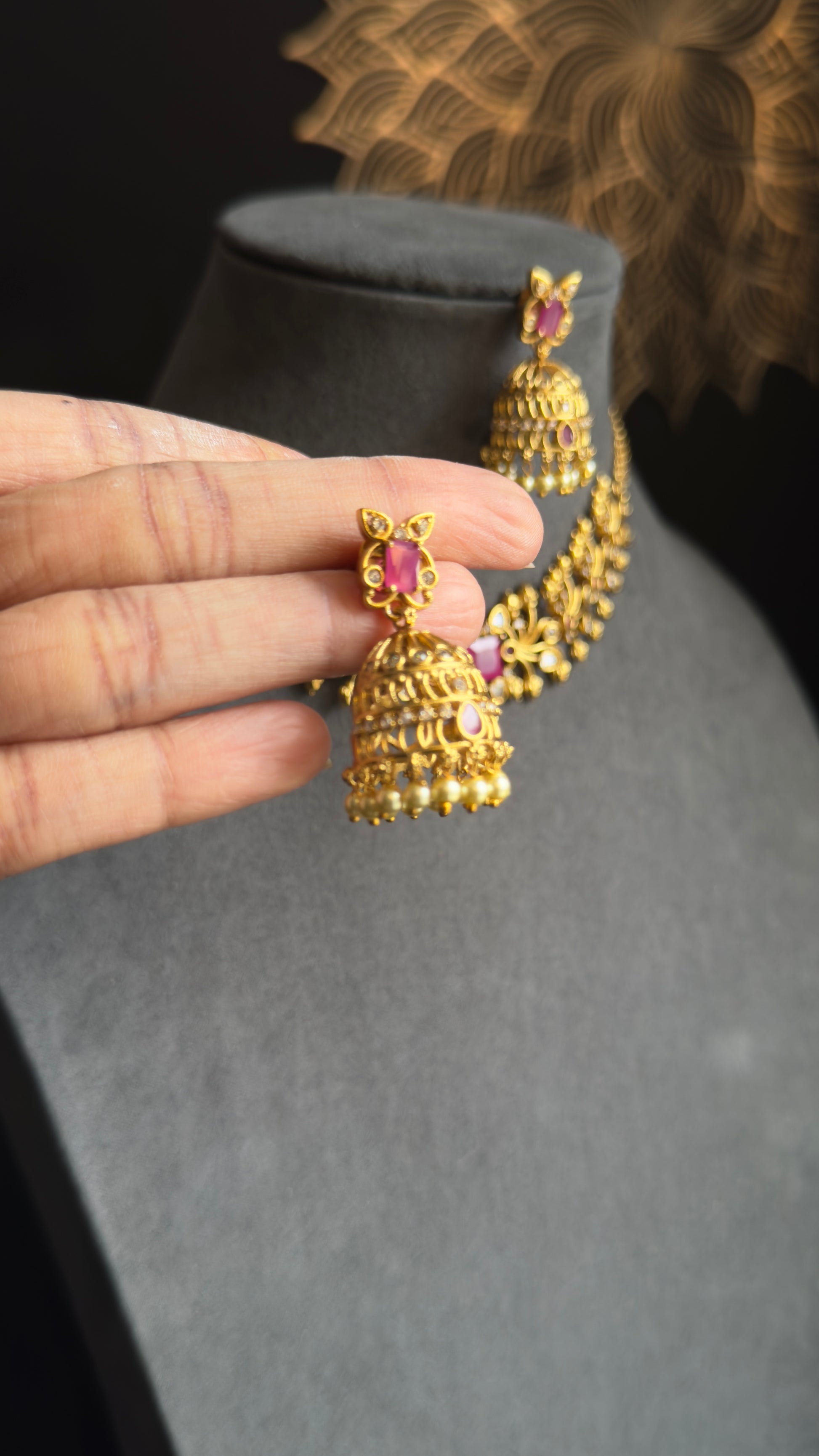 Belt syle Gold South Indian Gold Choker Set with Jhumka earrings- TRADITIONAL