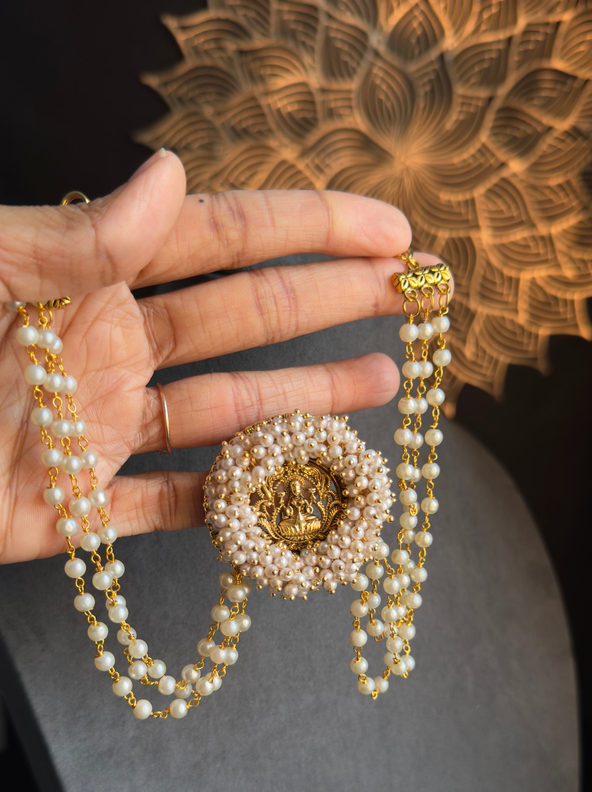 Elevate your look with the Cluster Pearl Lakshmi Jada Billai from Choti Hair Accessories! This elegant hair accessory features a pearl maatil-bun billai, making you feel like a goddess and channeling the blessings of Lakshmi. Add a touch of traditional beauty to any hairstyle with this exquisite piece today!