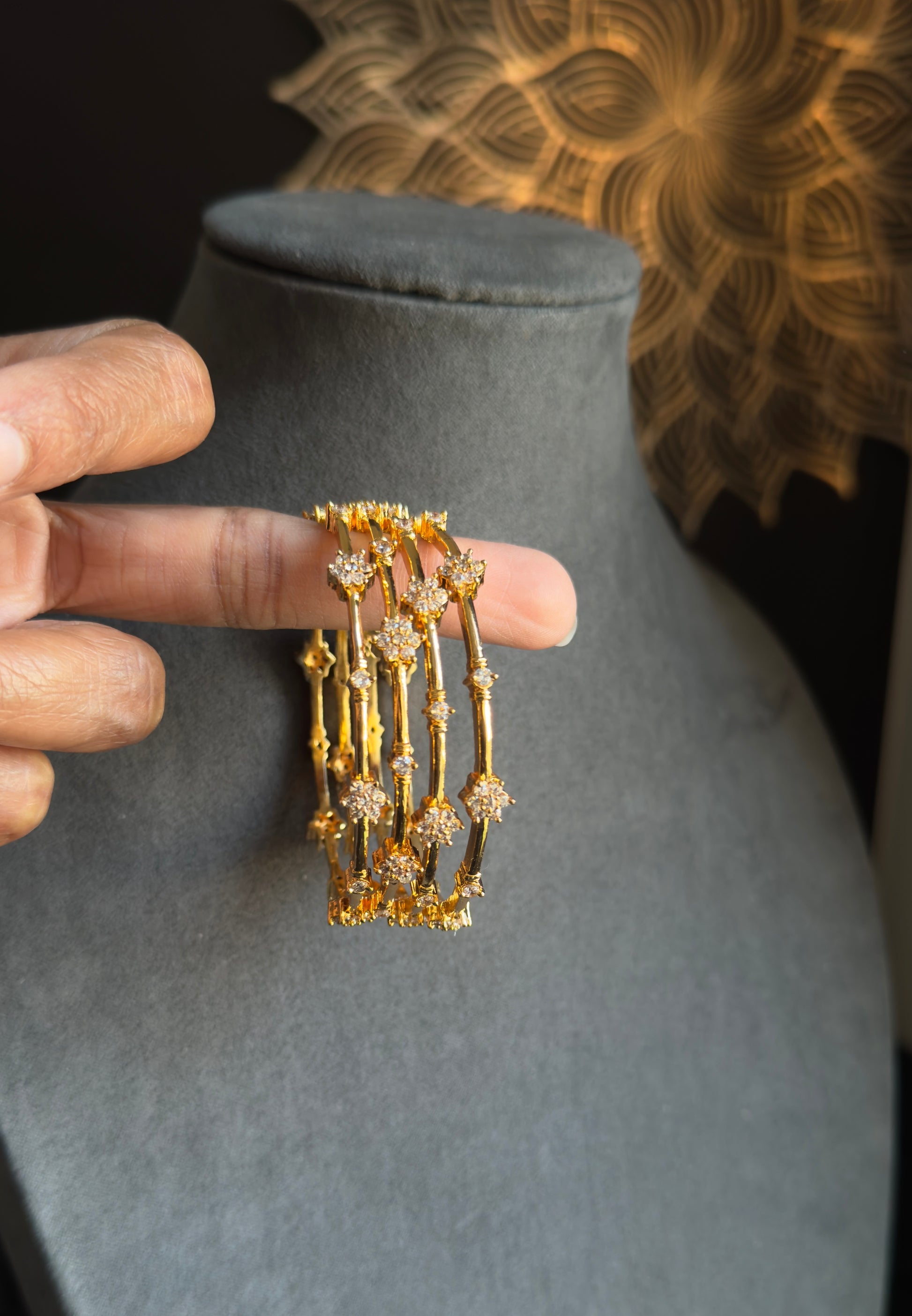 Set of 4 Dainty american diamond Antique Gold South Indian Bangle Kemp Bangle Antique indian bangle- TRADITIONAL