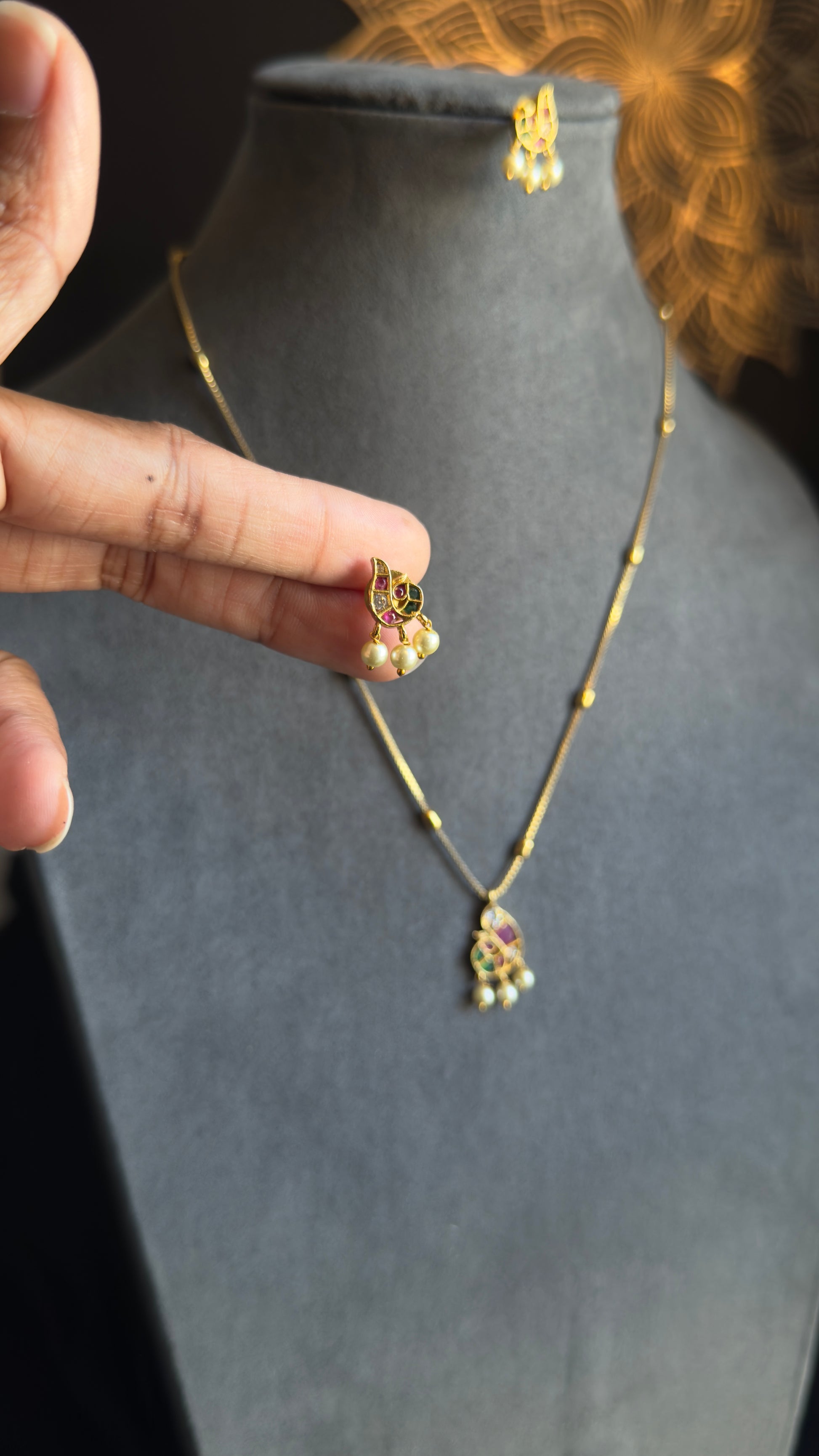 Enhance your traditional attire with our budget-friendly dainty pearl necklace set, featuring a charming pendant and matching earrings. This exquisite short necklace is adorned with pearls and hanging gold beads, making it a perfect choice for any Indian jewelry special occasions for Women and GIrls
