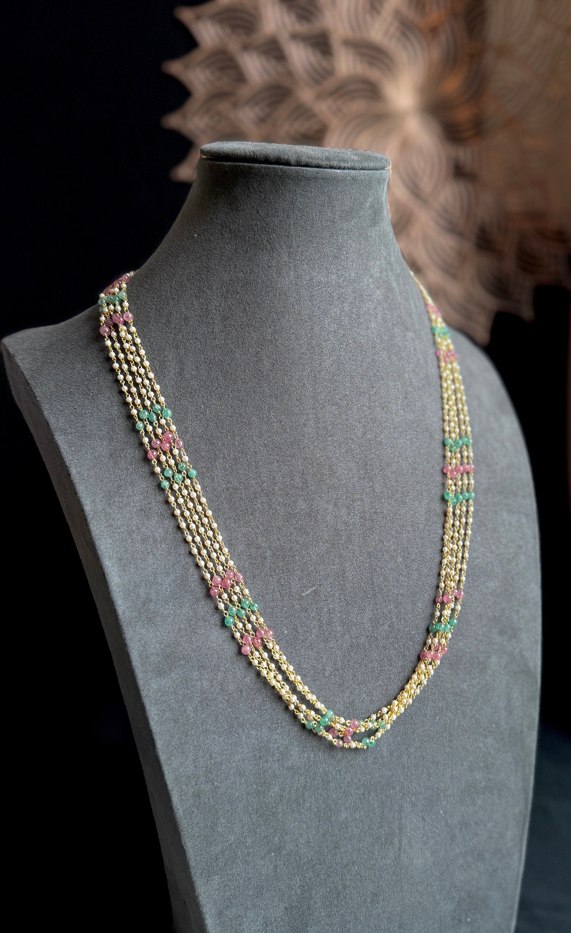 Enhance your traditional attire with our elegant 24-inch layered pearl necklace. This exquisite piece is perfect for both North Indian and South Indian jewelry collections. The layered design adds sophistication, making it ideal for weddings, festivals, and special occasions.