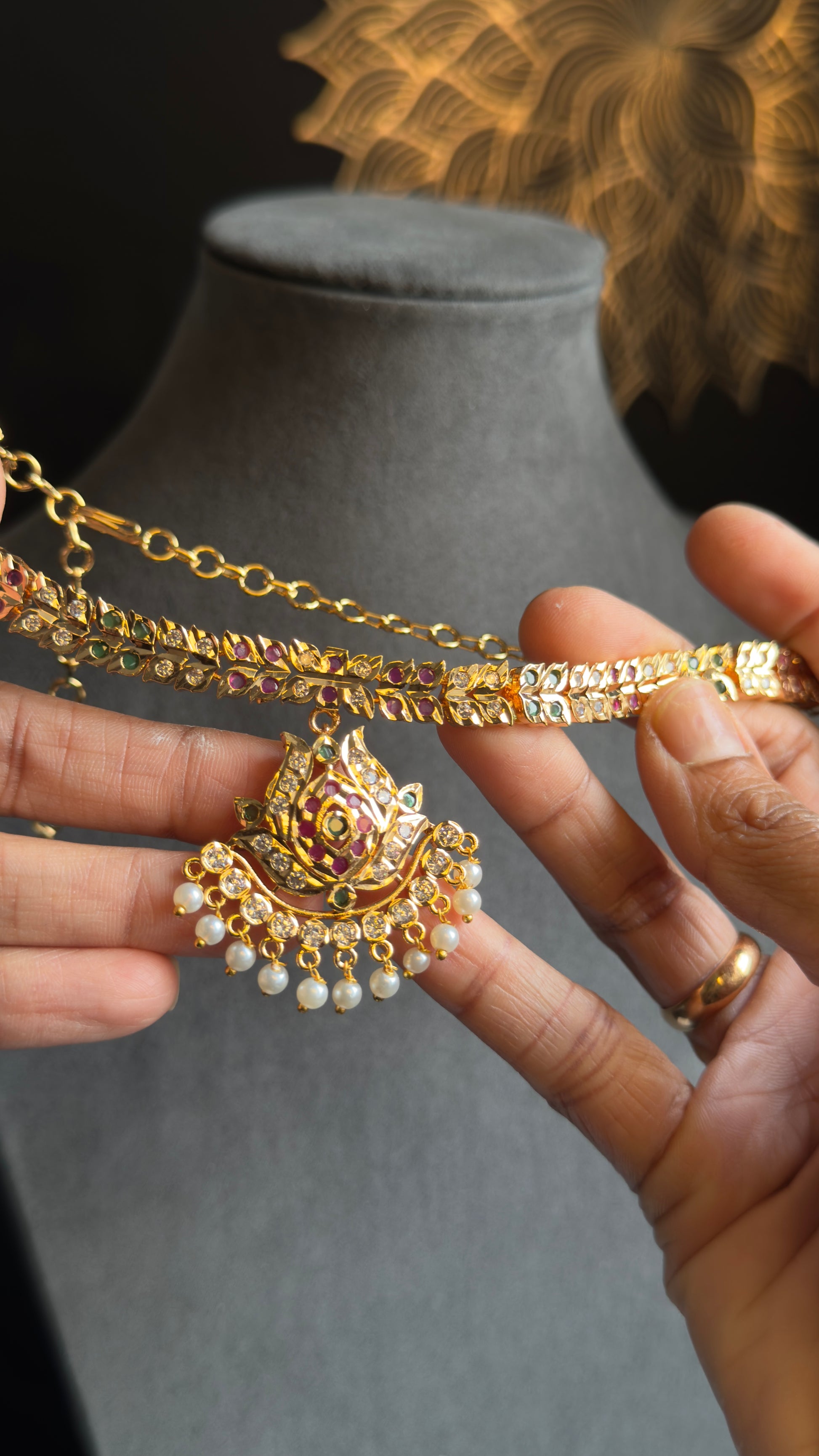The South Indian design with its intricate detailing makes it a must-have piece in your jewelry collection.