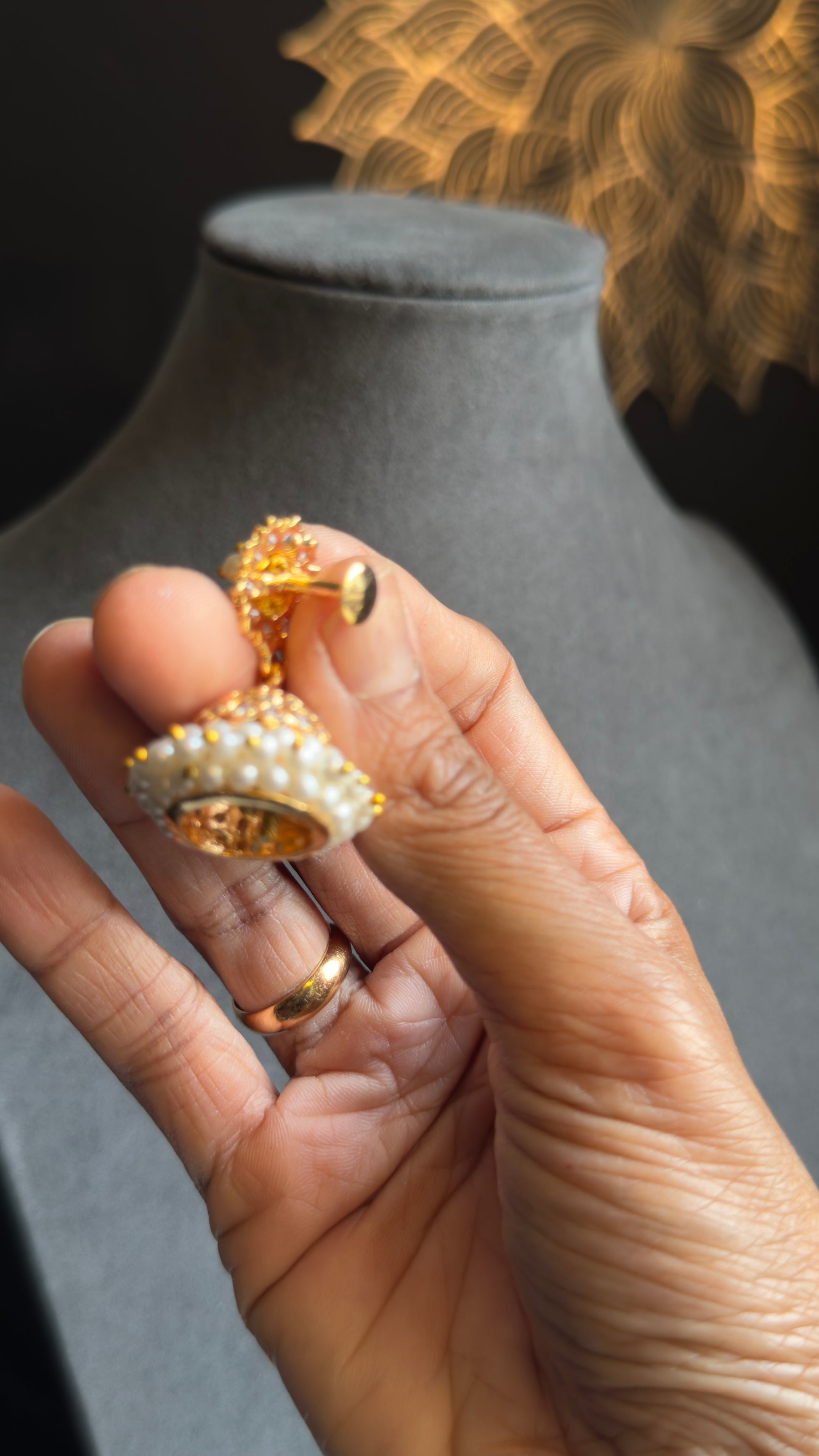 Impon Pearl Atigai Microgold Traditional Gold South Indian Jewelry Necklace jhumki Set - TRADITIONAL