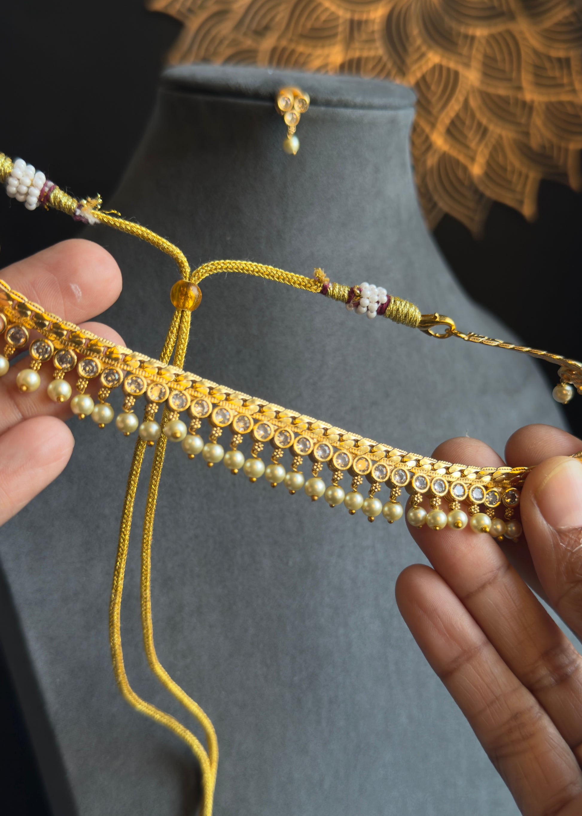Kemp AD dainty Gold South Indian jewelry Necklace Set - TRADITIONAL