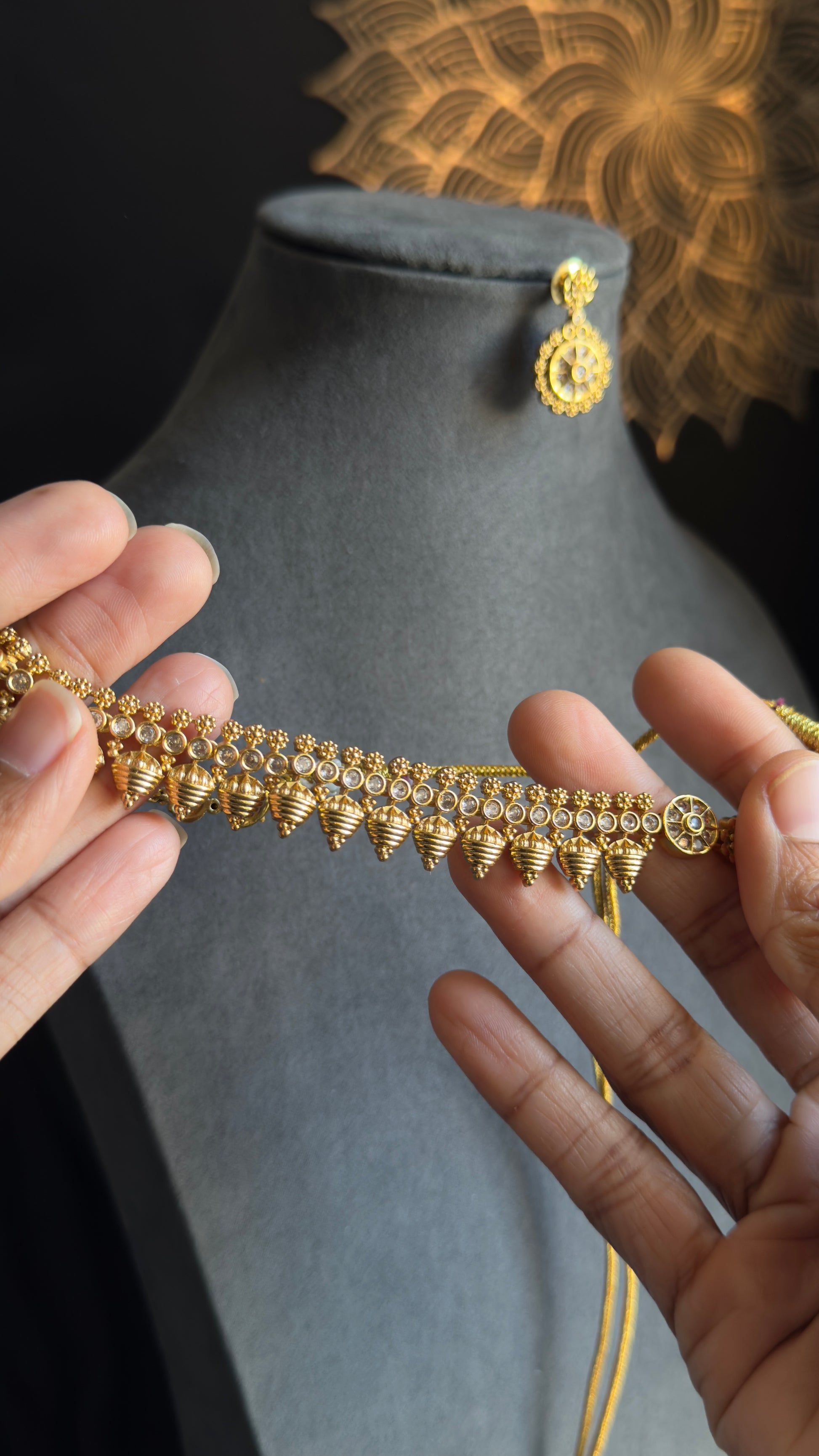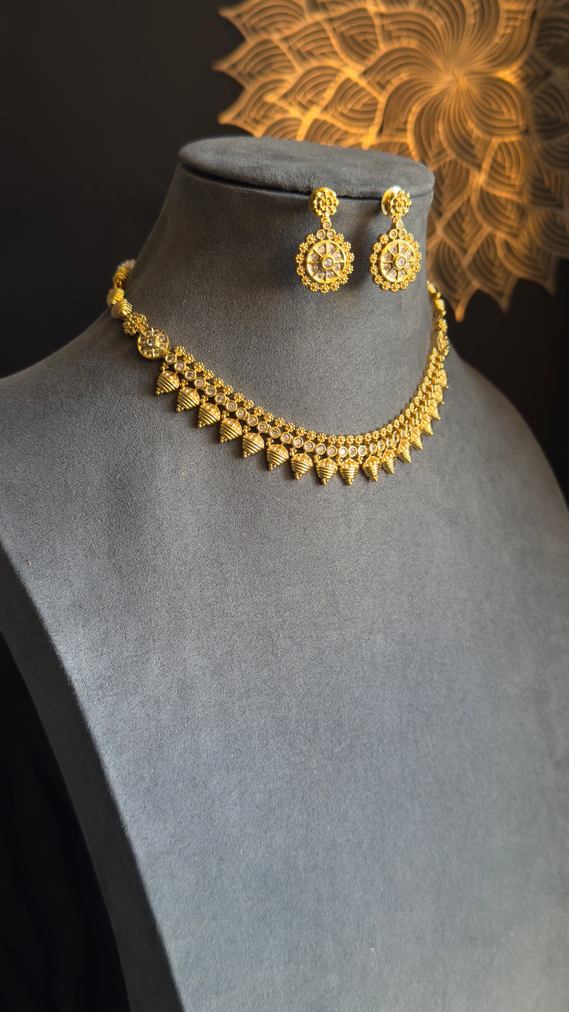 This stunning set, complete with matching earrings, is inspired by Indian jewelry designs and is perfect for weddings, festivals, and special occasions.