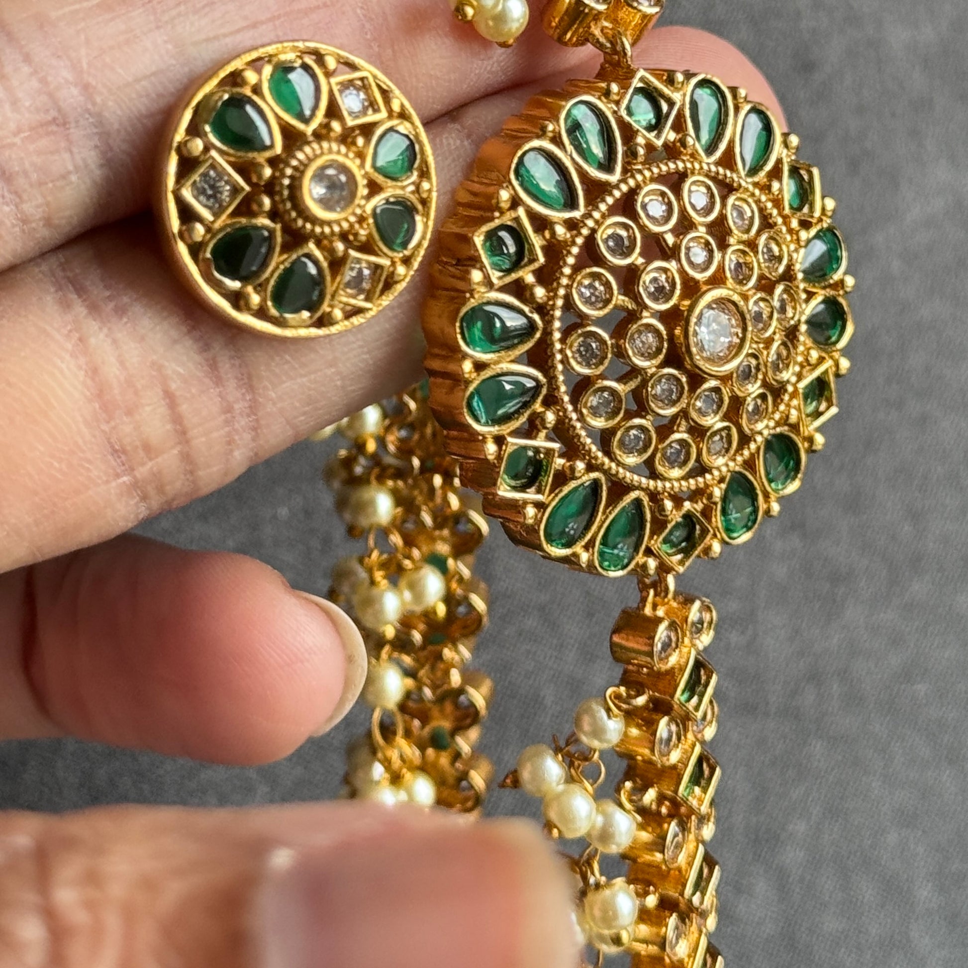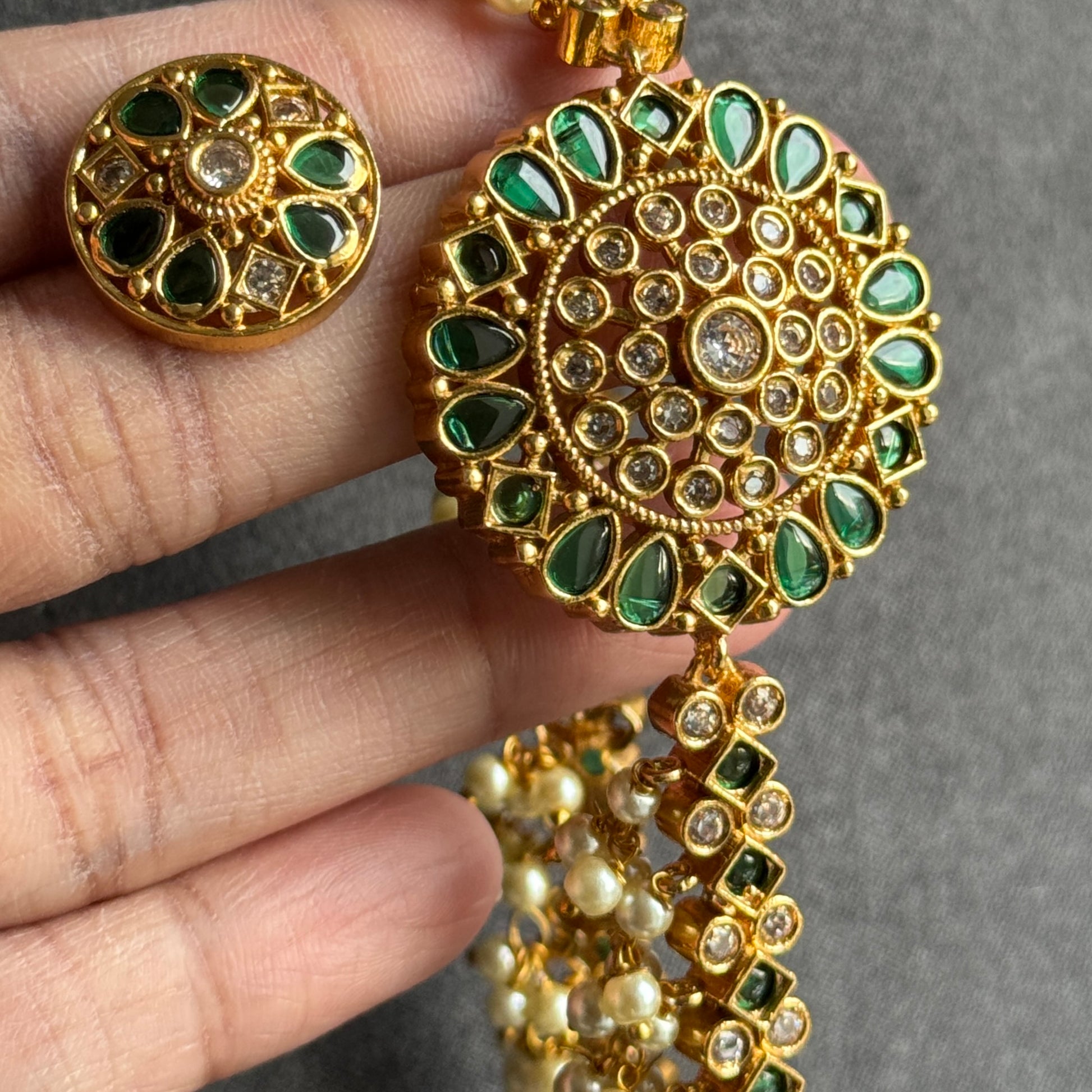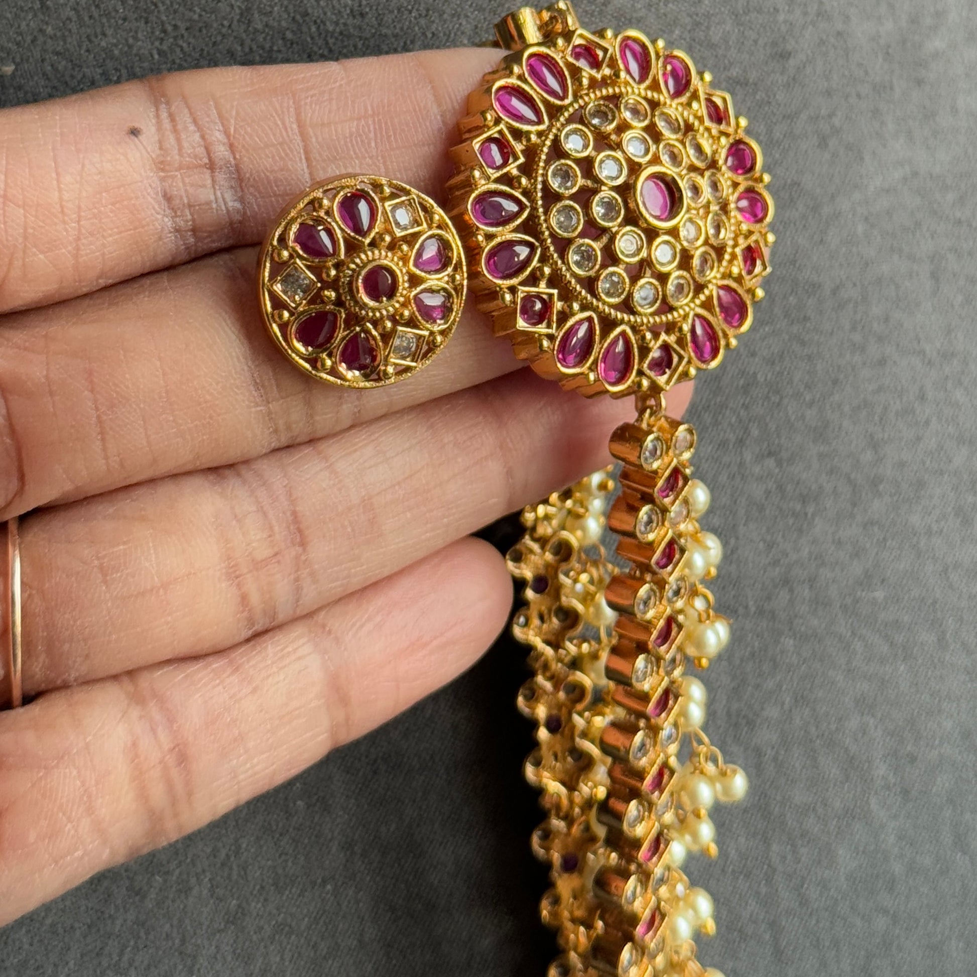 The intricate design is complemented by delicate pearl drops, adding a touch of sophistication and grace. Perfect for brides and those attending weddings, festivals, or cultural events, this choker comes with matching Stud earrings to complete your ensemble.