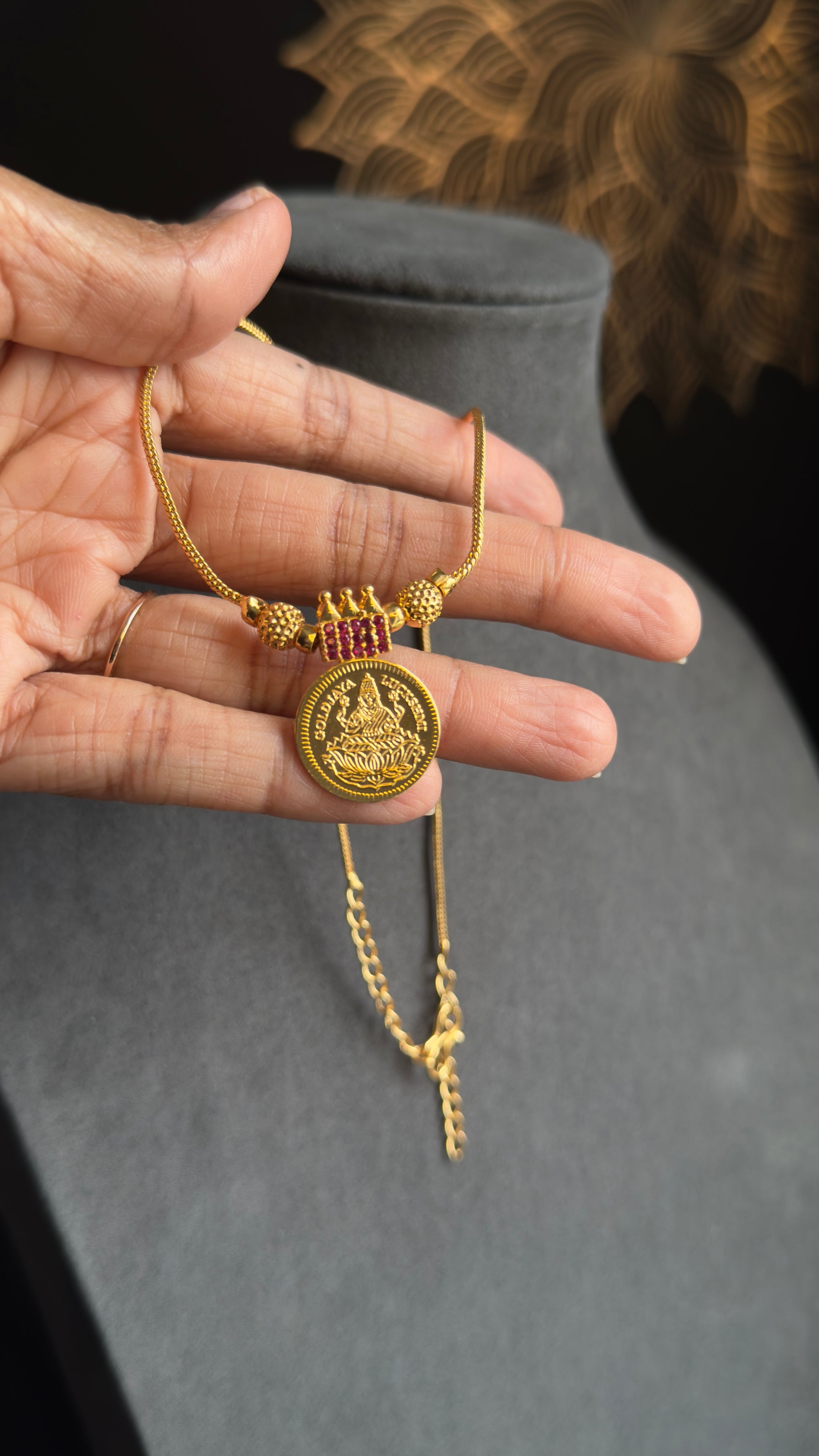 Lakshmi coin Pendant microgold Gold Traditional South Indian Necklace set - BUDGET