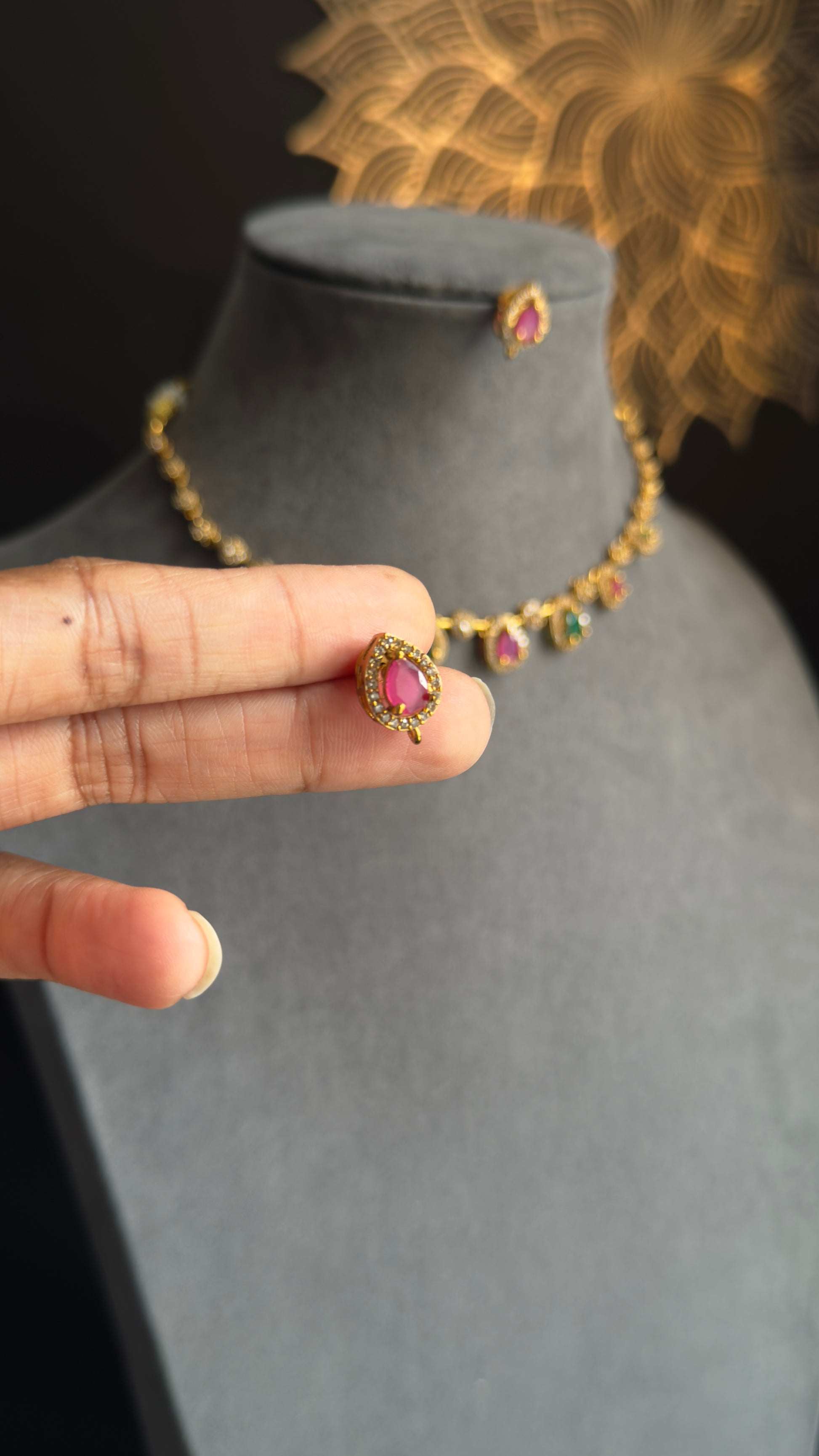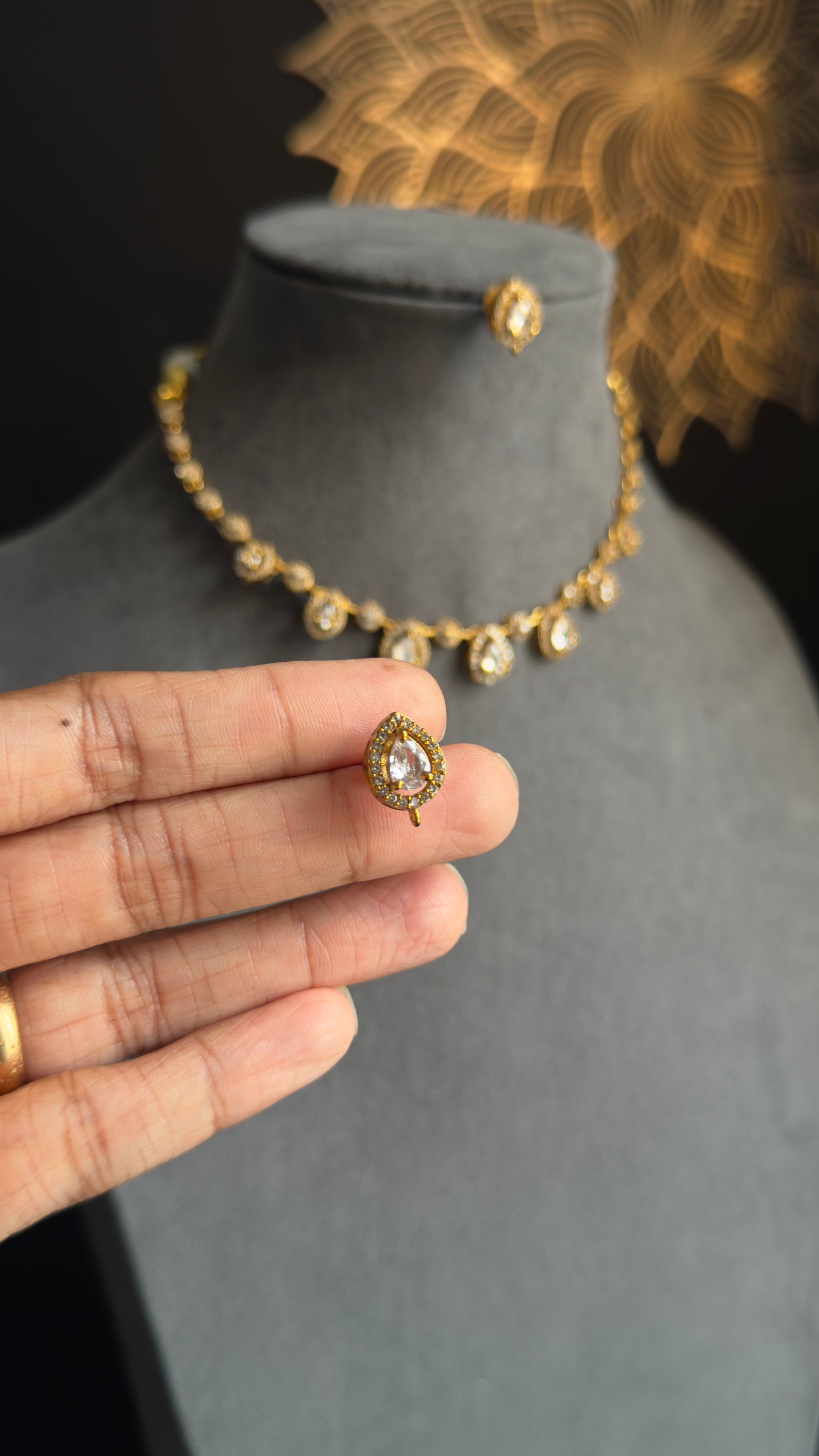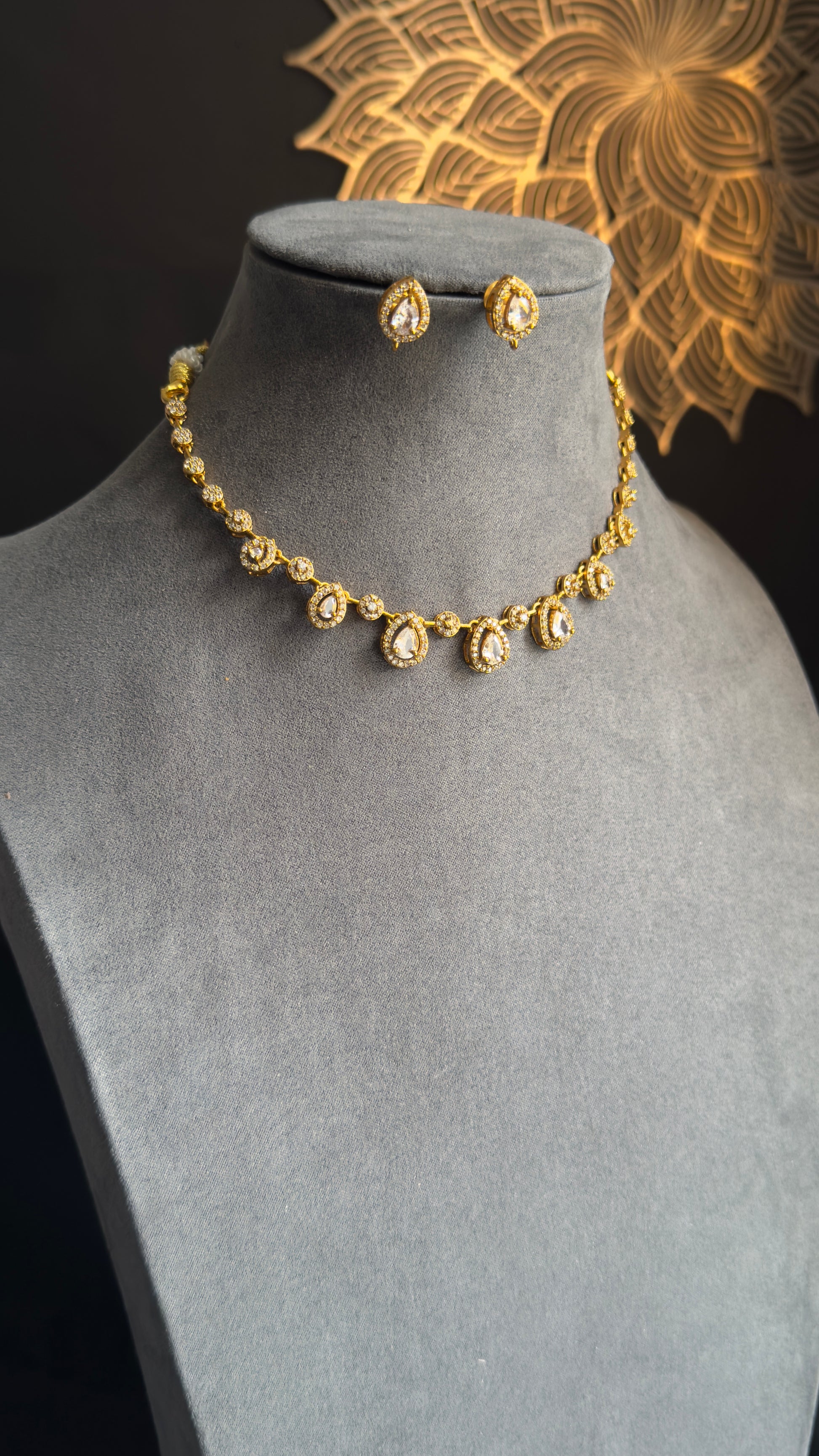 Panoply Matt Gold AD Necklace set stud Earrings - AMERICAN DIAMOND