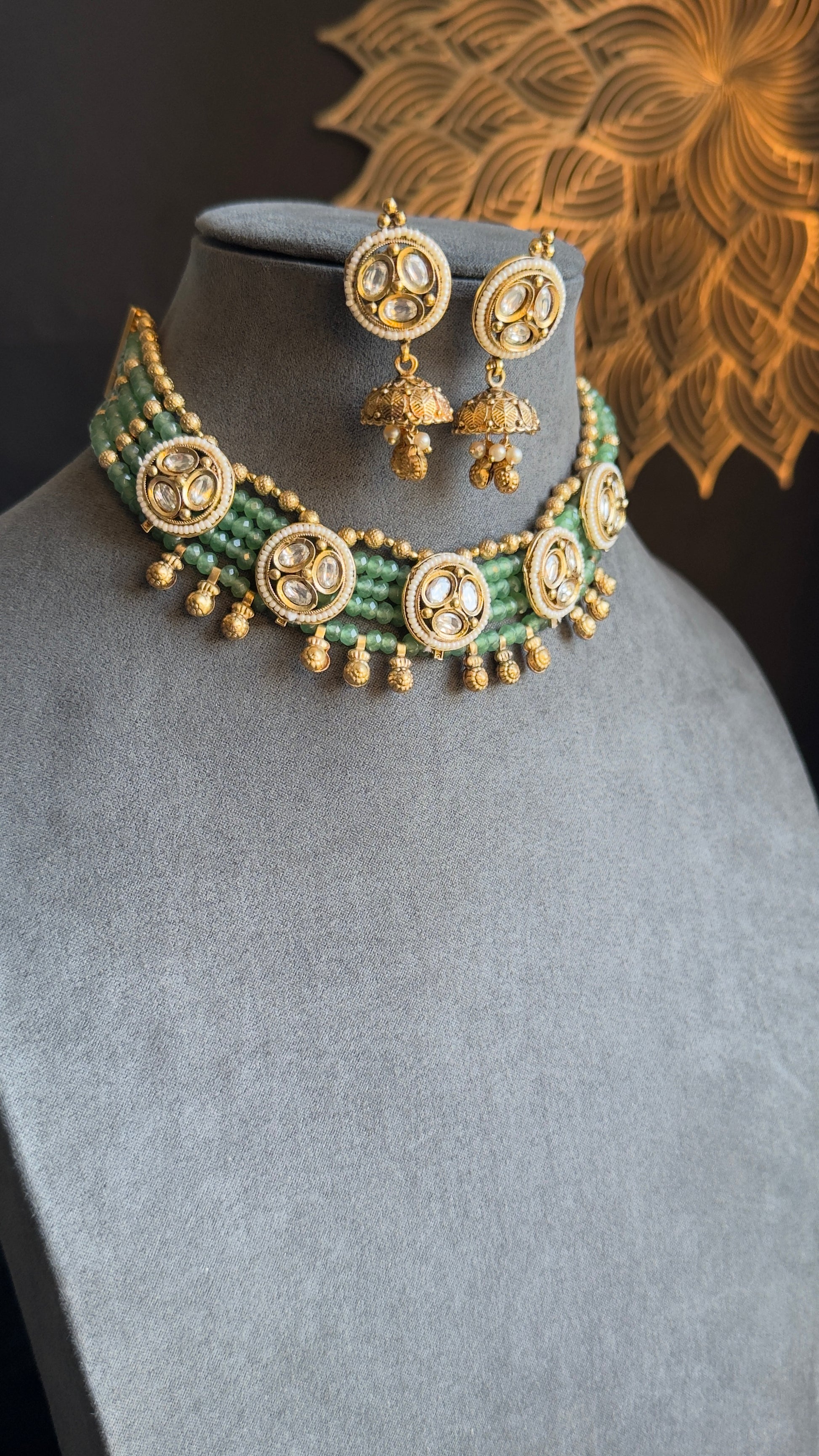 - Elegant choker set with reverse AD Kundan and pearl accents