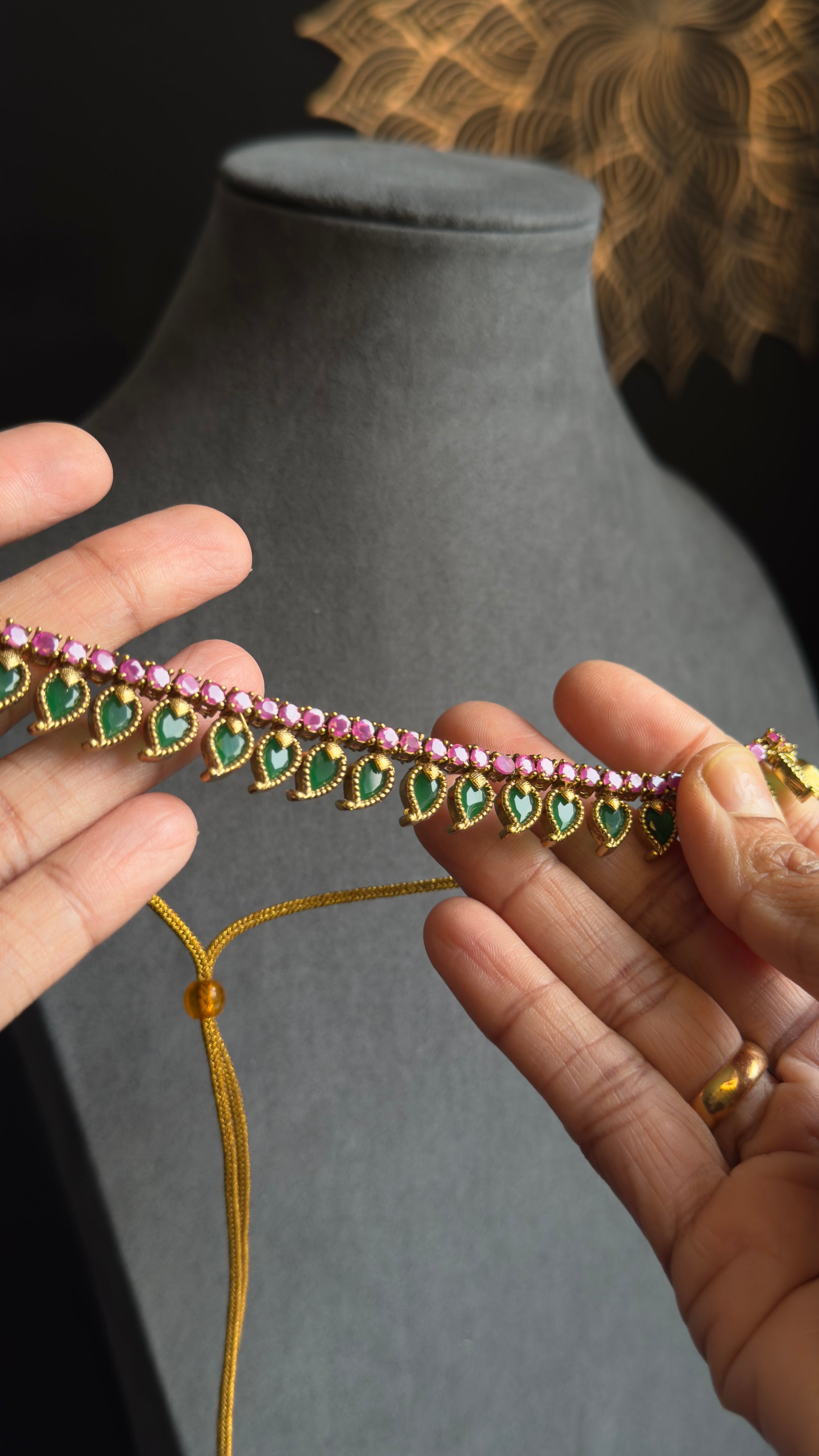 Real kemp Kerala palakka Vine Gold South Indian jewelry Necklace Set - TRADITIONAL