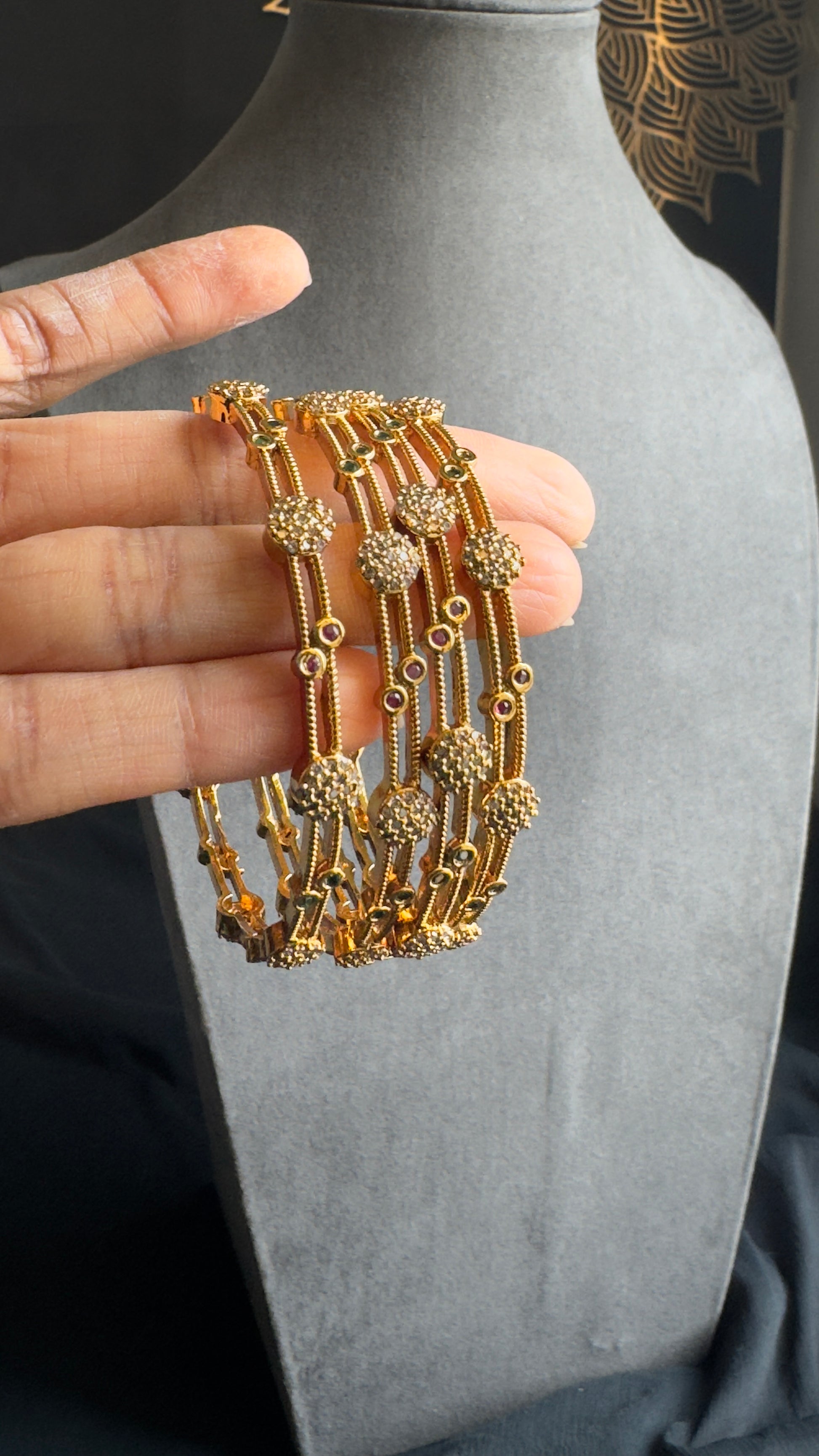 Set of 4 american diamond AD Kundan style cubic Zirconia studded peacock Bangle Kemp Bangle South indian Jewelry Antique indian jewelry - TRADITIONAL