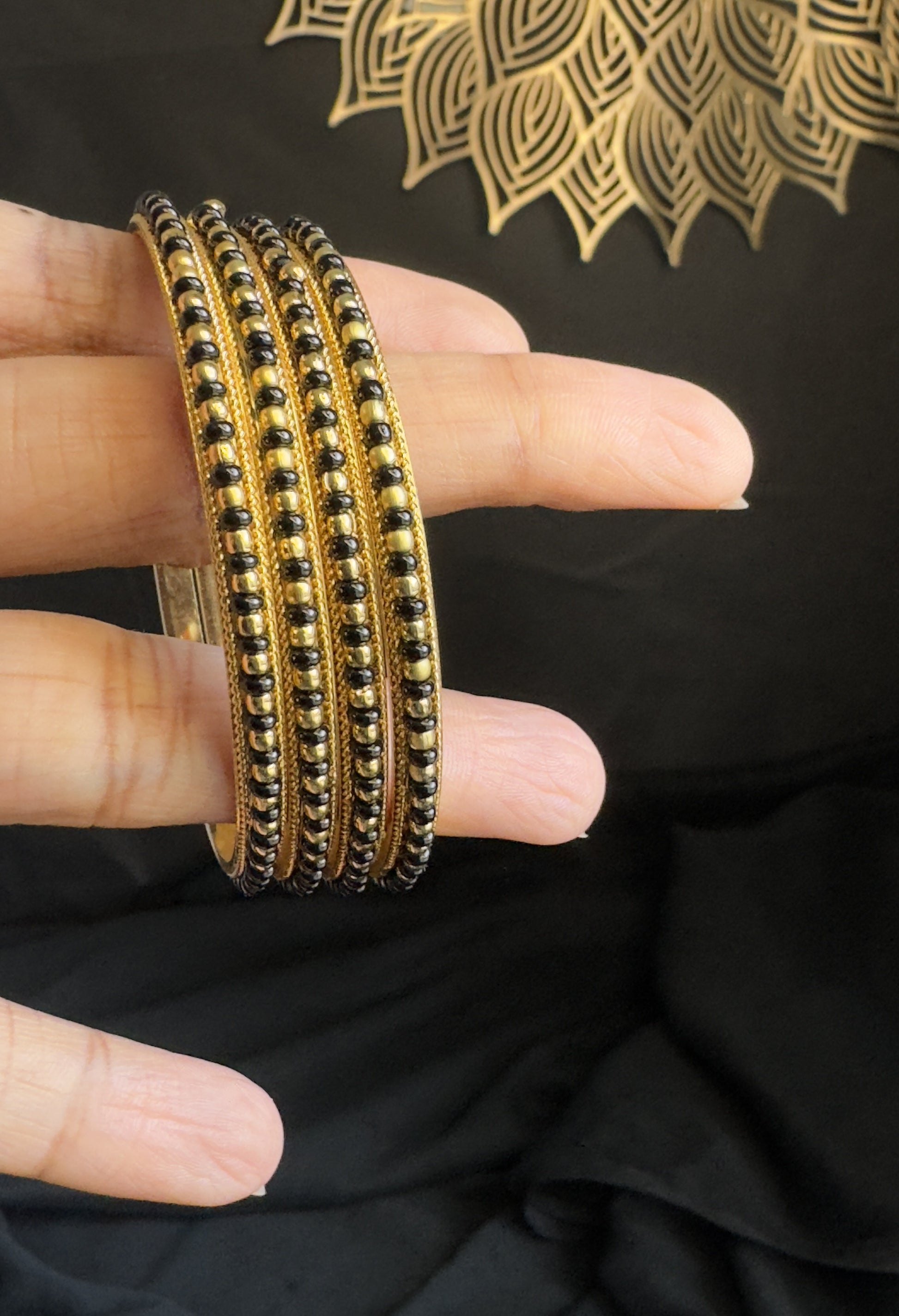 Set of 4 Black bead south indian Bangles traditional bangle - BUDGET