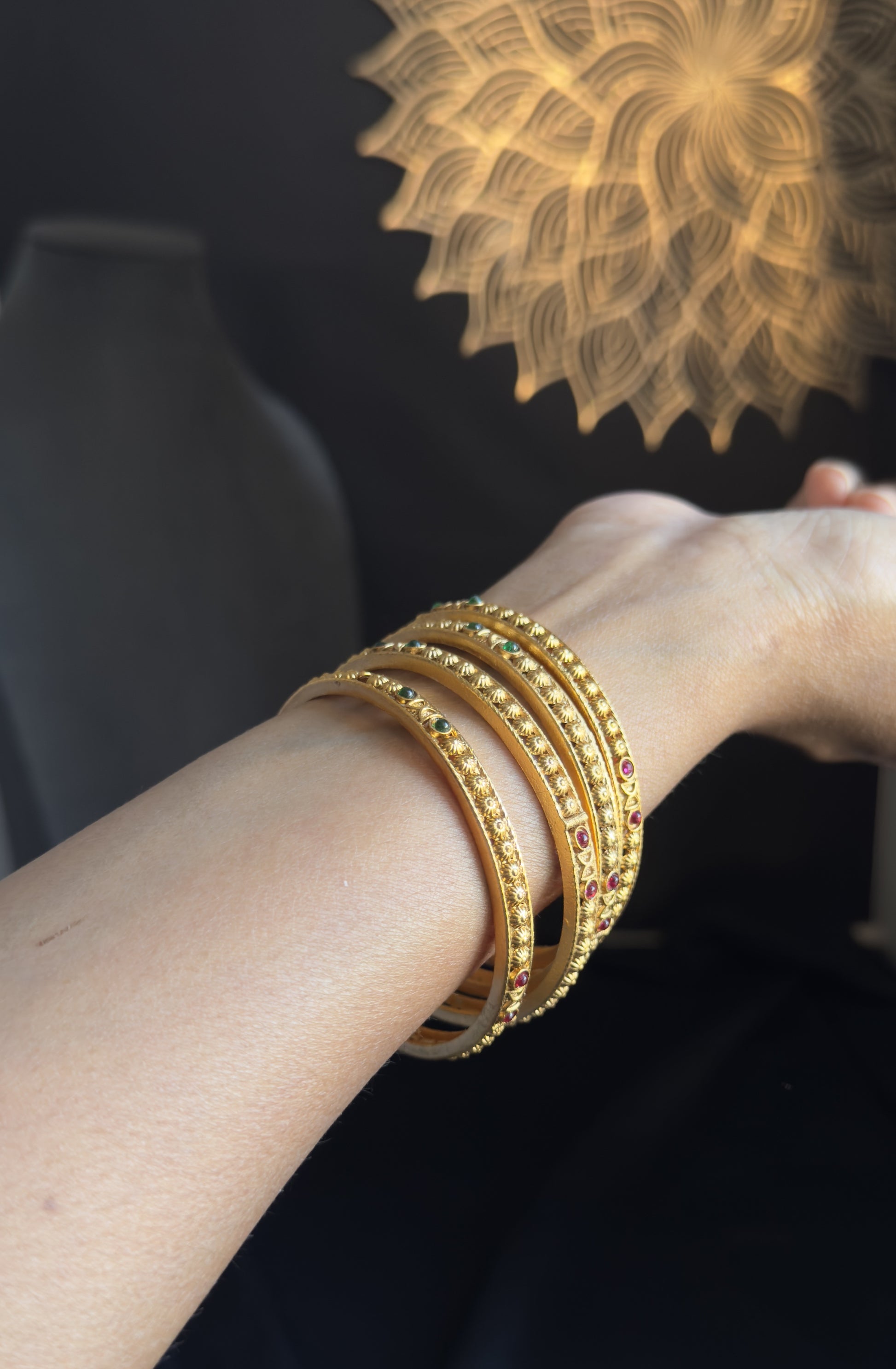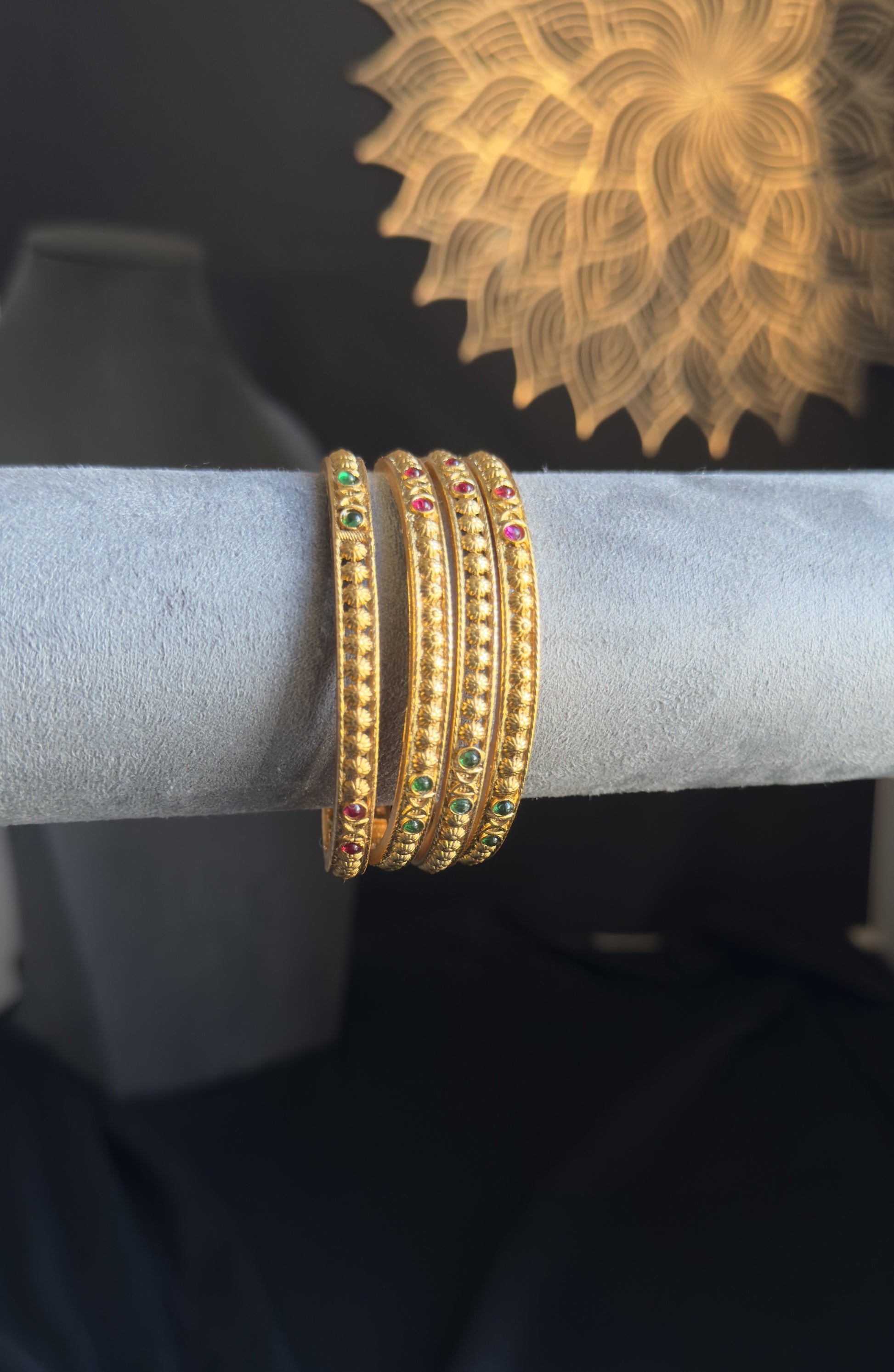 Set of 4 Dainty Simple Antique Gold South Indian Bangle - TRADITIONAL