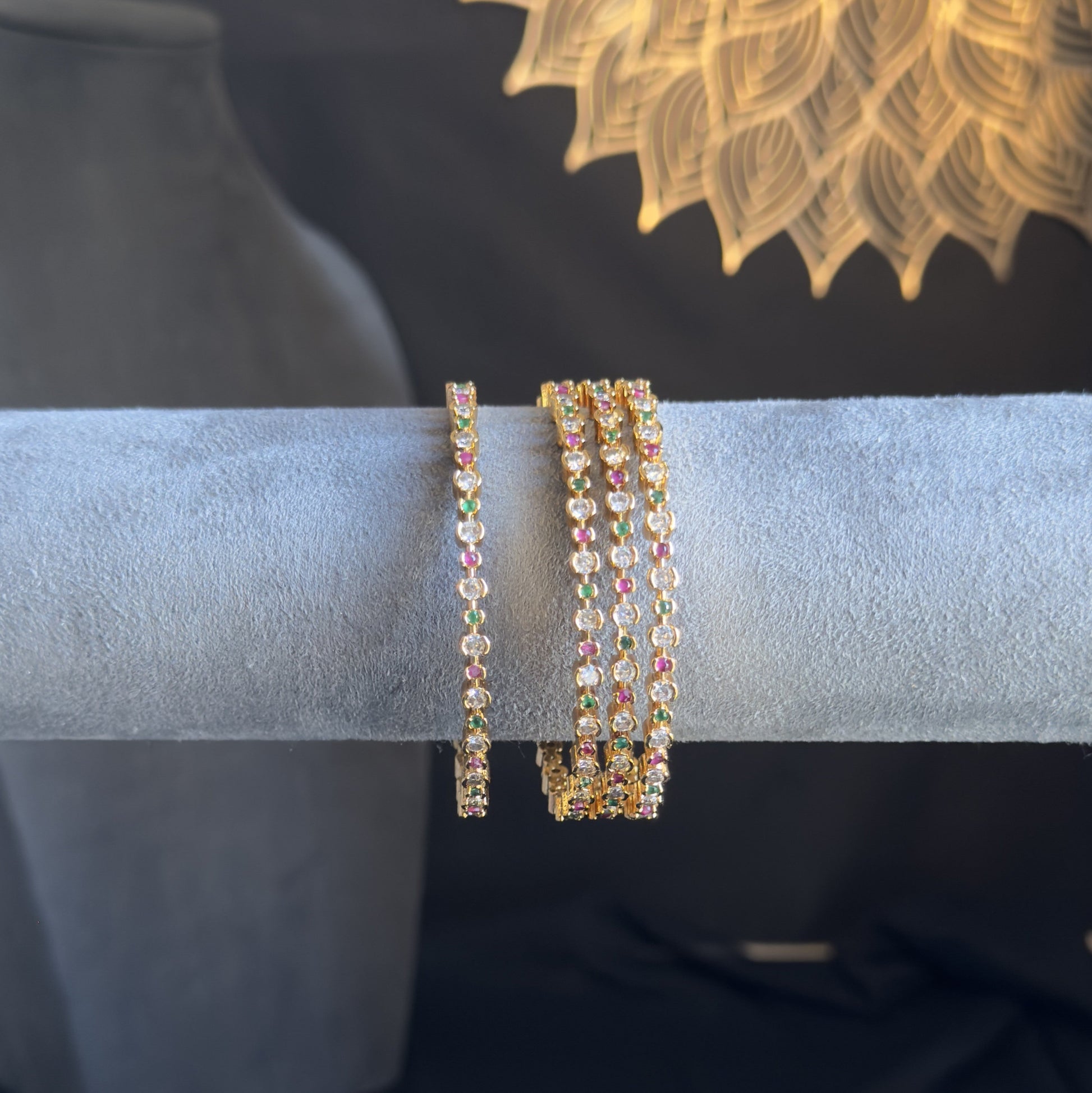 Set of 4 Multicolour Dainty american diamond Antique Gold South Indian Bangle - TRADITIONAL