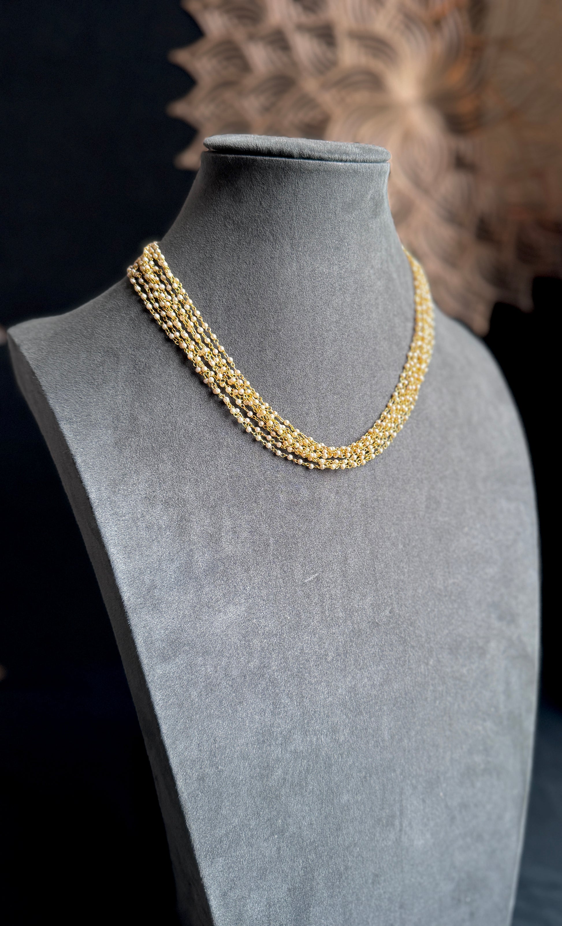 Enhance your traditional attire with our elegant 16-inch layered pearl necklace. This exquisite piece is perfect for both North Indian and South Indian jewelry collections. The layered design adds sophistication, making it ideal for weddings, festivals, and special occasions.