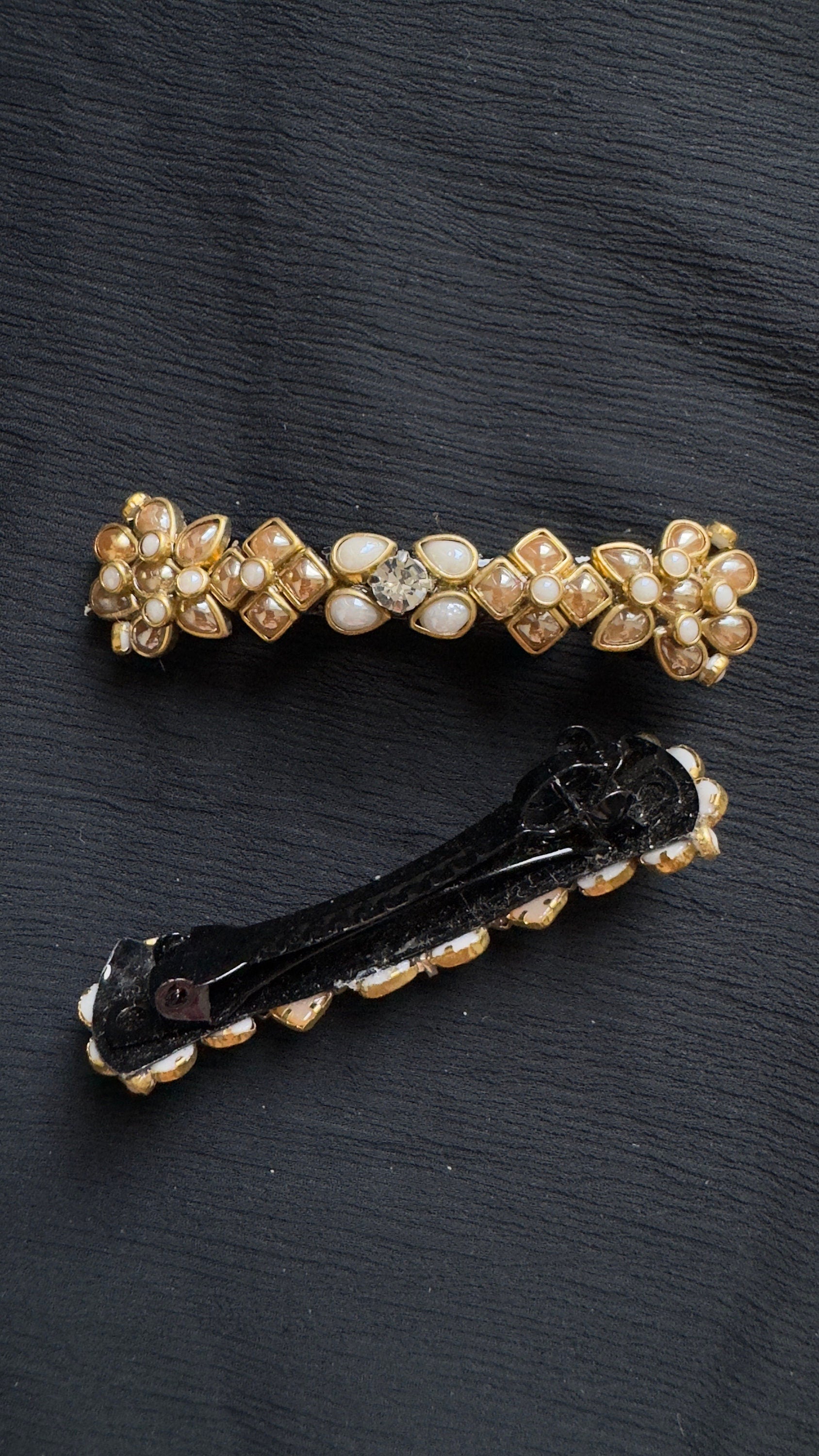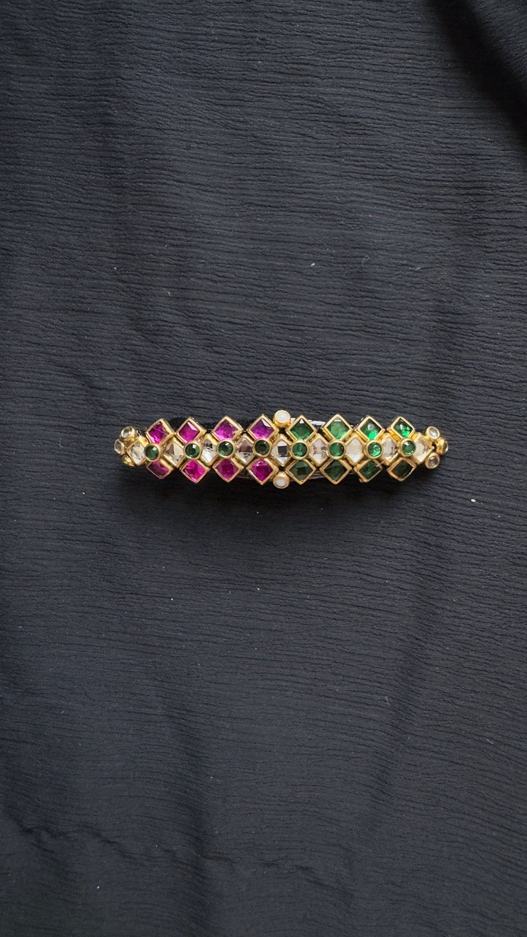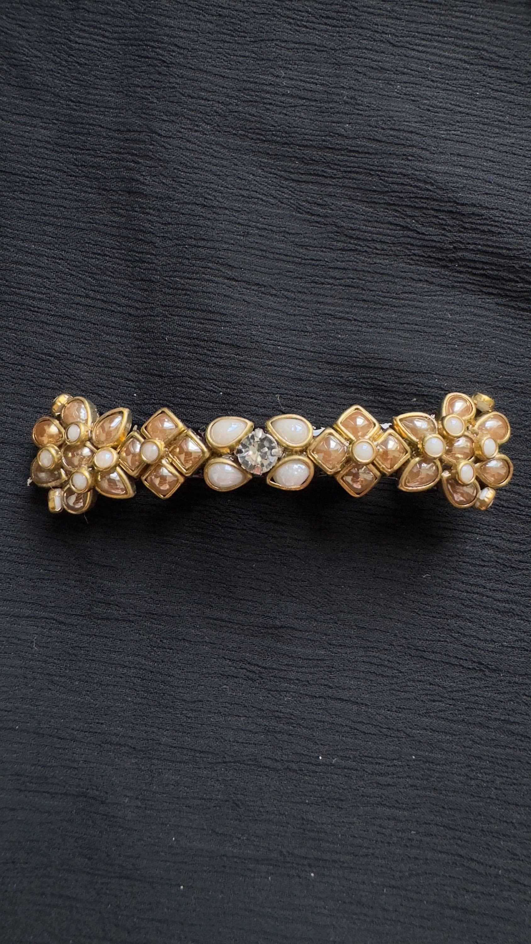 Enhance your accessories collection with our Charming Flower Kundan Centre Hair Clip, a delightful addition to any outfit, featuring a vibrant Kundan that adds a pop of color and elegance to your hairstyle.