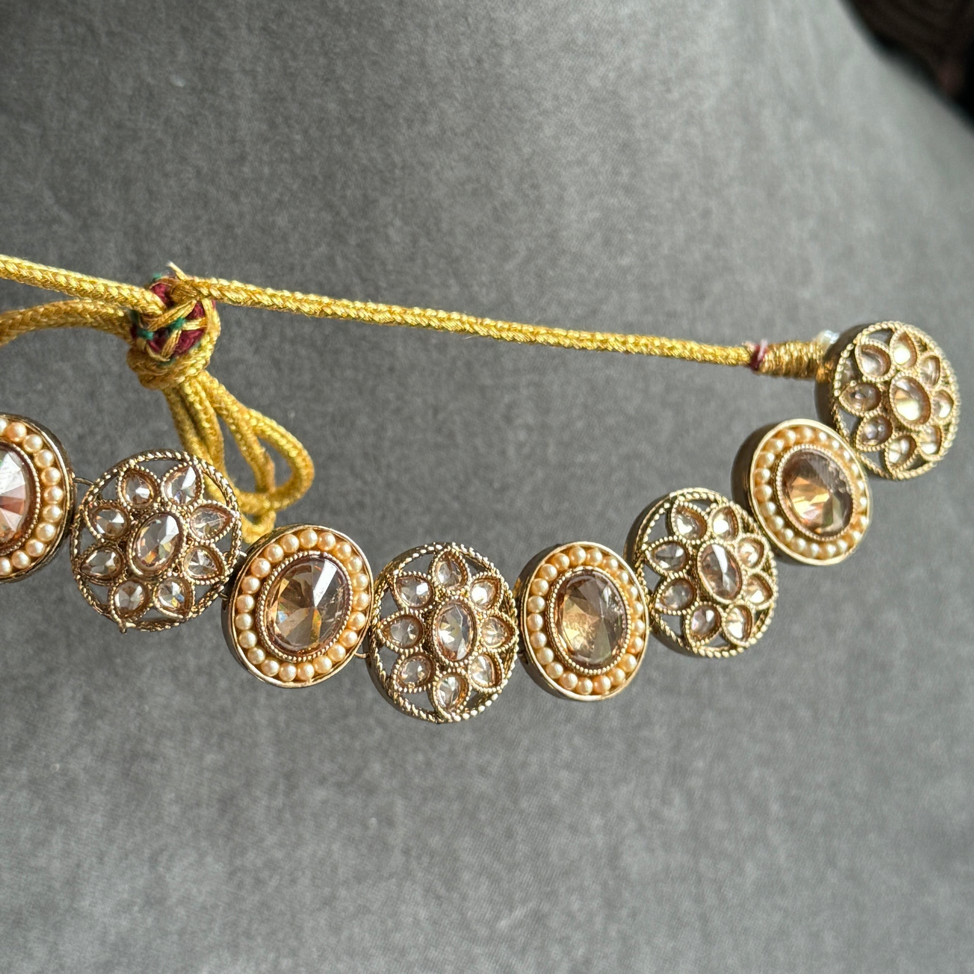 Trendy Mehendi Kundan Reverse AD Choker Earrings Tikka - BOLLYWOOD